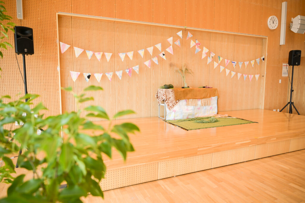 また、本物の野菜やススキを使った祭壇や門を設け、会場の演出にもこだわりました。
