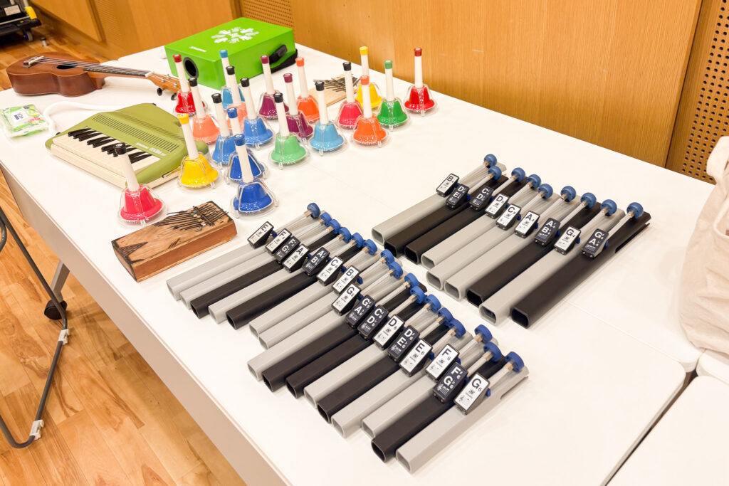 ワークショップが終わると、こどもたちが気に入った楽器を手に取り、自然に楽器体験の時間が始まりました。